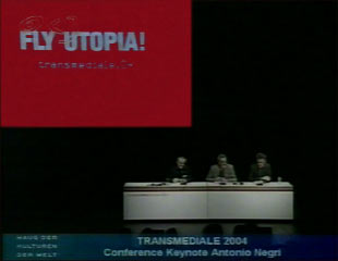 | An article (no online link) in the spiegel magazine refers to young mobile users in the Berlin night as acting in swarm like habit: ‘Biologists speak about emergent behaviour. Nobody has an idea, but suddenly all act at the same moment. The ideas evolve from movement. …’ A more directed movement is suddenly shown through the elder form of flashmobs (via PLSJ) during the recent events in madrid. This might be closer to Toni Negri’s mentioning of multitude to be thought of as a swarm when speaking at the transmediale under it’s announcing ad ‘Fly Utopia’. |