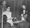 | .. What is a widely shared aesthetic in the Arab world is that of singing poetry, in other words using your voice and melody, and then improvisations, melodic improvisations, in order to really bring out the meaning of an important text. And these were important texts. It was fundamental to her career that she sang fine poetry. For the most part, she always did that. | ![]() Umm Kulthum meeting with her band |