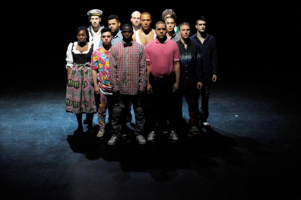 Constanza Macras’ piece Distortion is a first time cooperation with the HipHop Academy Hamburg. The break- and street dancers meet the live musicians from the company of DorkyPark in a choreography that diffracts breakdance and hip-hop moves with keywords from political and media discourses. In question is the definition of identity for ‘being German’ when one defines oneself in tune with the surrounding majority due to birth- and living circumstances, but is not represented in the general definition of ‘being German’. The arising questions of identity, migration, and body looks the dancers experience in their daily life are subject of examination, deconstruction, remix and distortion the performer play out through and with their own body. (currently at the schaubühne, Berlin)